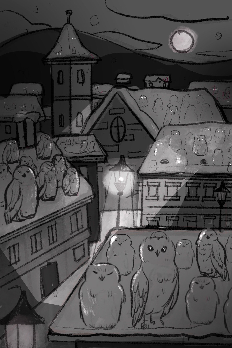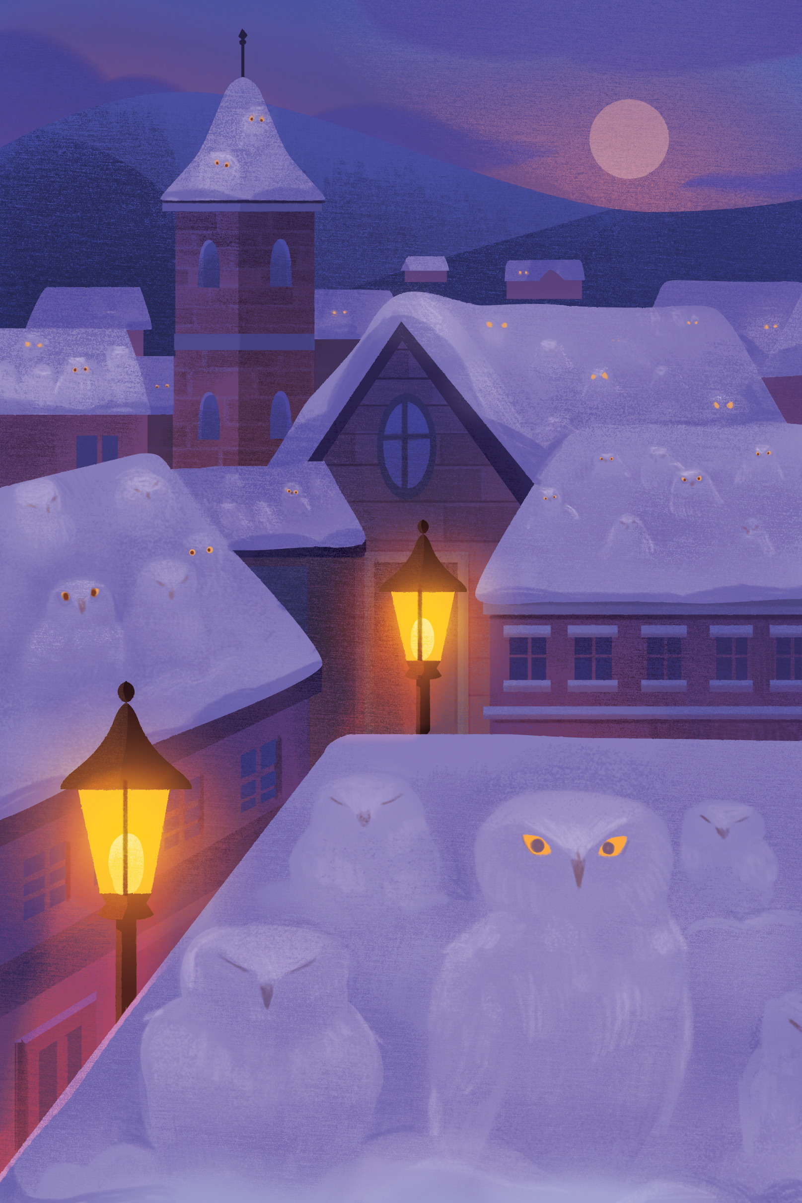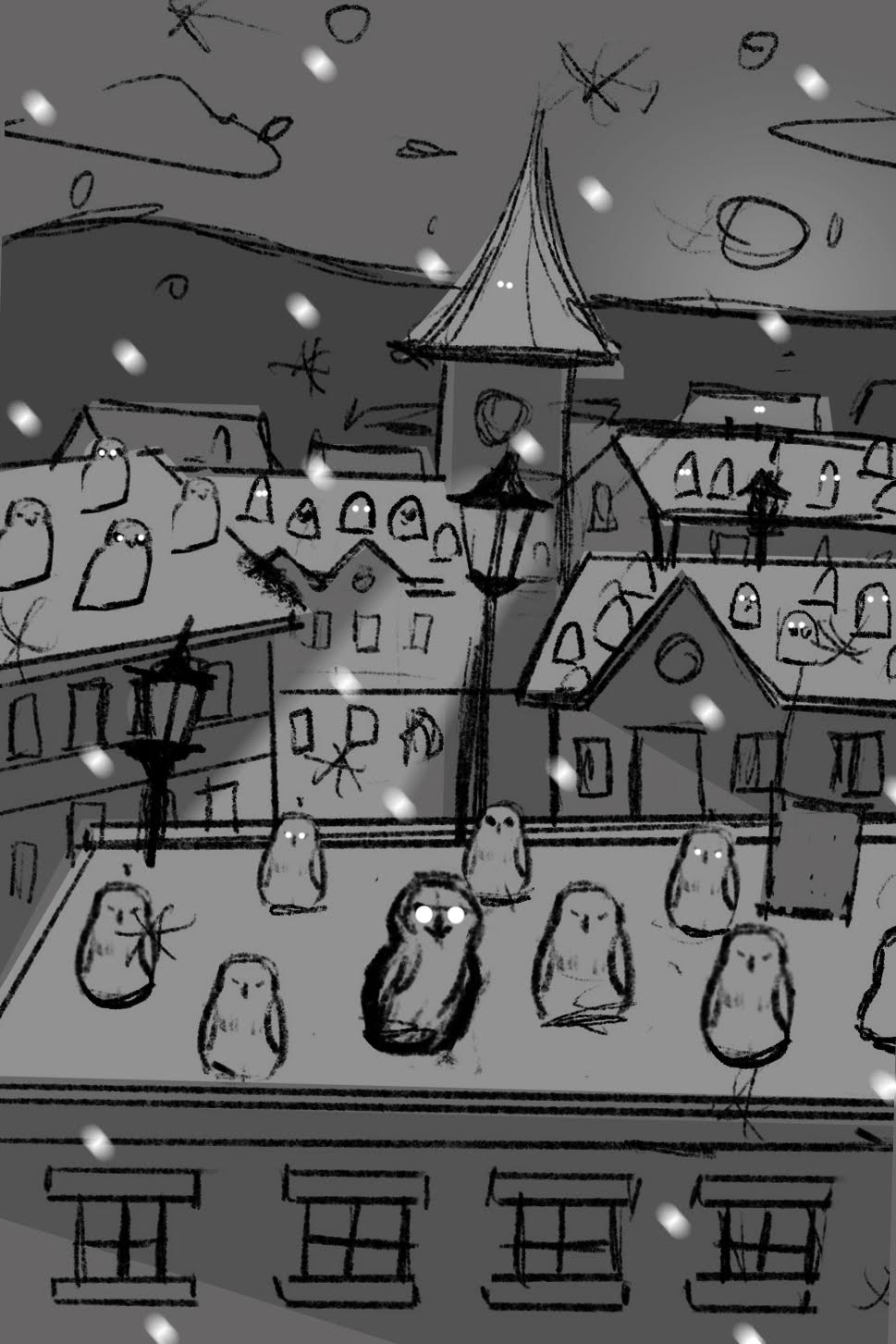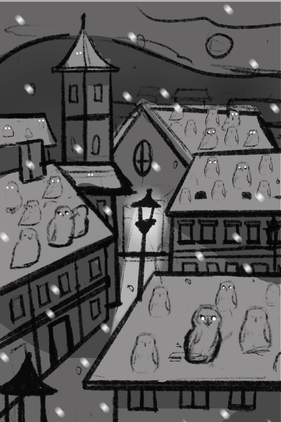 Voici par exemple les différentes étapes de création d'une carte illustrée par Emily Paik : toute la subtilité de cette carte est de créer autant la sensation de neige que de chouettes ! C'est l'une des premières cartes qu'Emily a illustrées, ça nous a permis, à toutes les deux, de savoir comment échanger efficacement, surtout avec deux cultures totalement différentes… car Emily est coréenne !