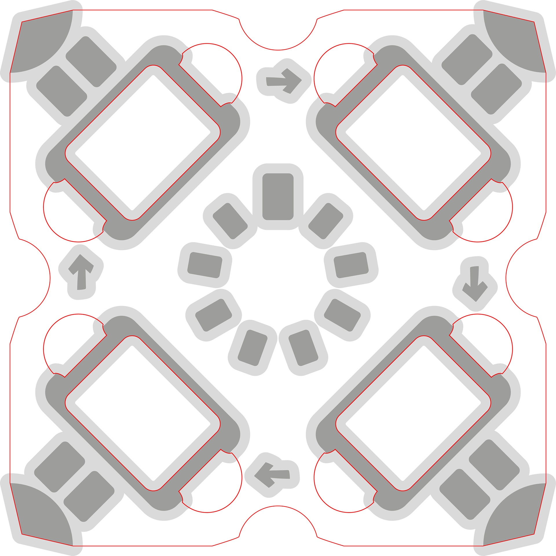 L'insert a été lui aussi un défi technique et je l'ai travaillé en même temps que le plateau… et pour cause, les deux doivent fonctionner ensemble ! Sous chaque terrier doit se trouver un trou pour accueillir les meeples lapins, mais suffisamment grand pour permettre l'ouverture des portes. Les 4 trous ronds dans l'insert autour du terrier bleu et rouge, par exemple, existent pour permettre le mouvement de bascule des terriers !