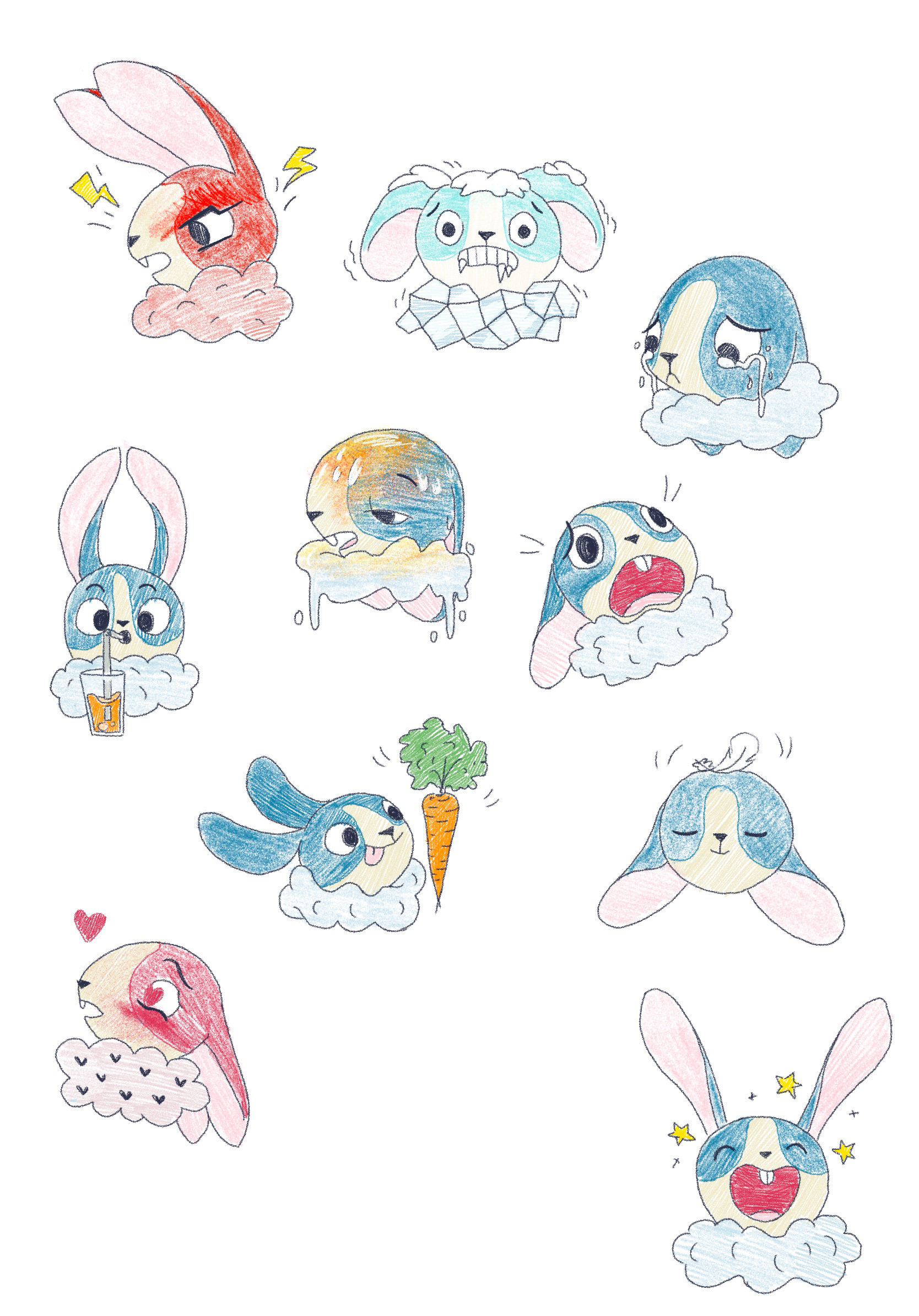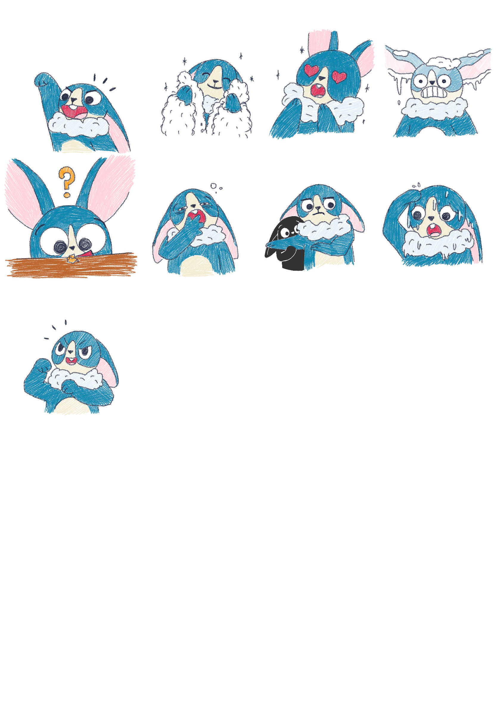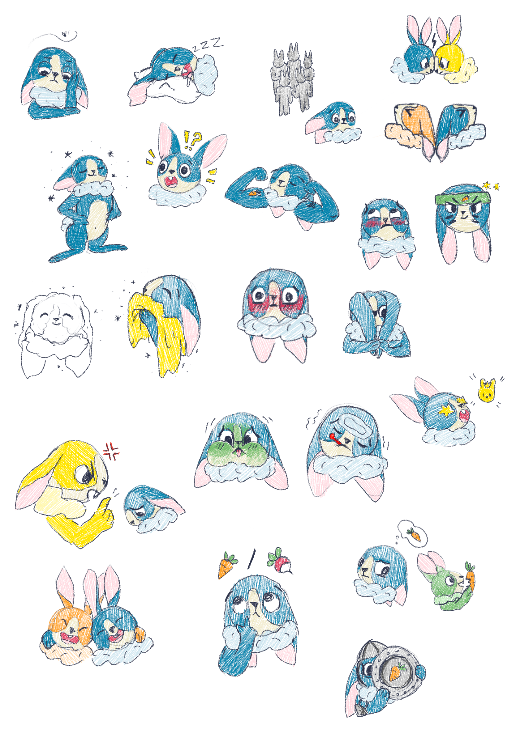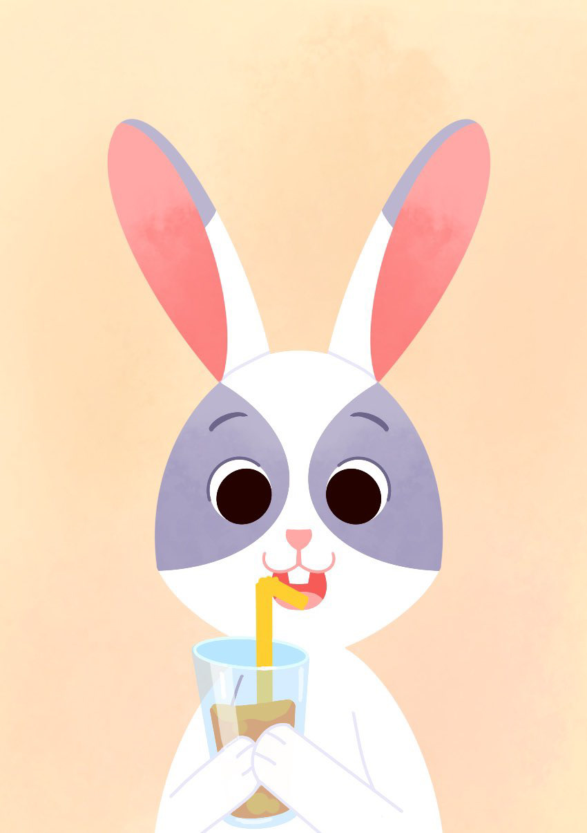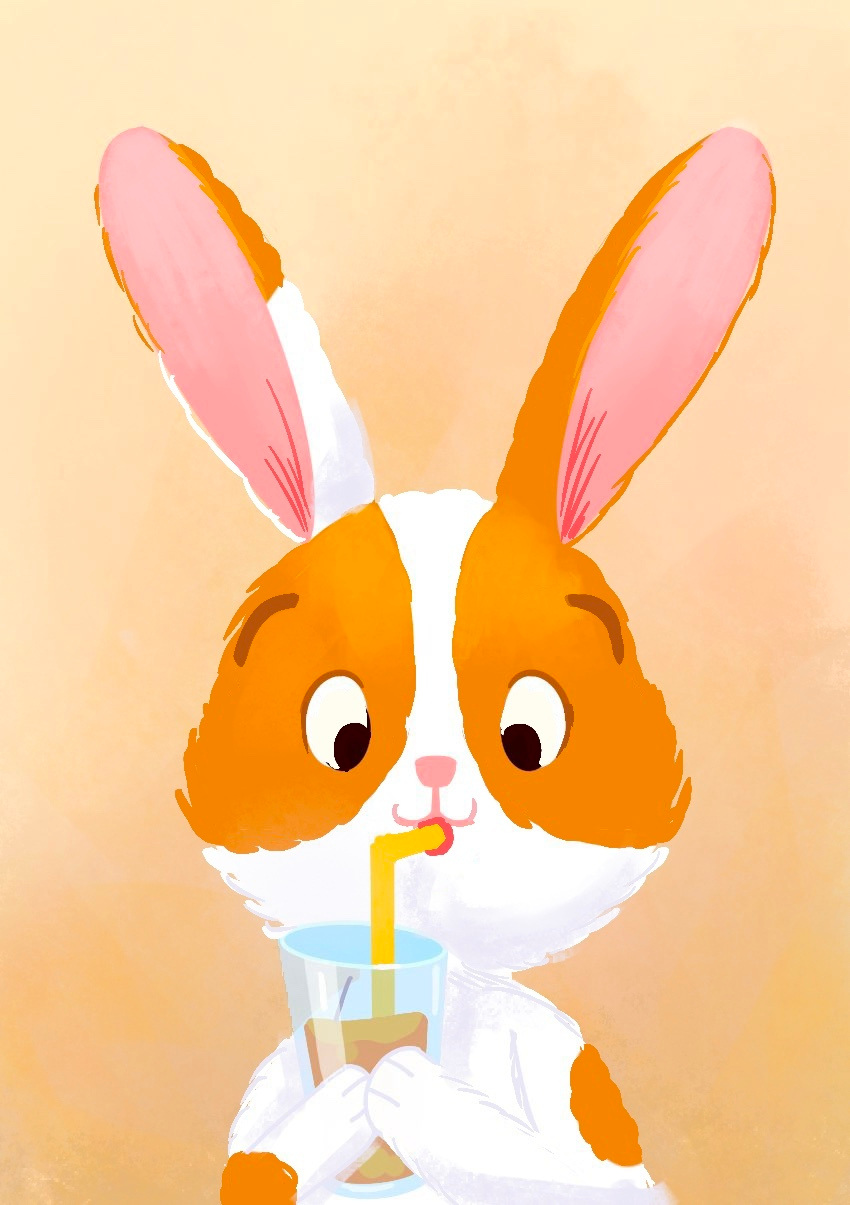 Après avoir déterminé les notions présentes dans le jeu, j'ai illustré de nombreux lapins tests afin de les valider en conditions réelles avant de demander leurs versions finales à l'illustratrice Emily Paik. Le premier lapin illustré a permis de définir son aspect graphique pour le répercuter ensuite sur l'ensemble du jeu. Quelques rares lapins, comme celui-ci, ont eu droit à des changements importants… car tous ont été testés auprès d'enfants et d'adultes pour confirmer, ou non, leur interprétation.