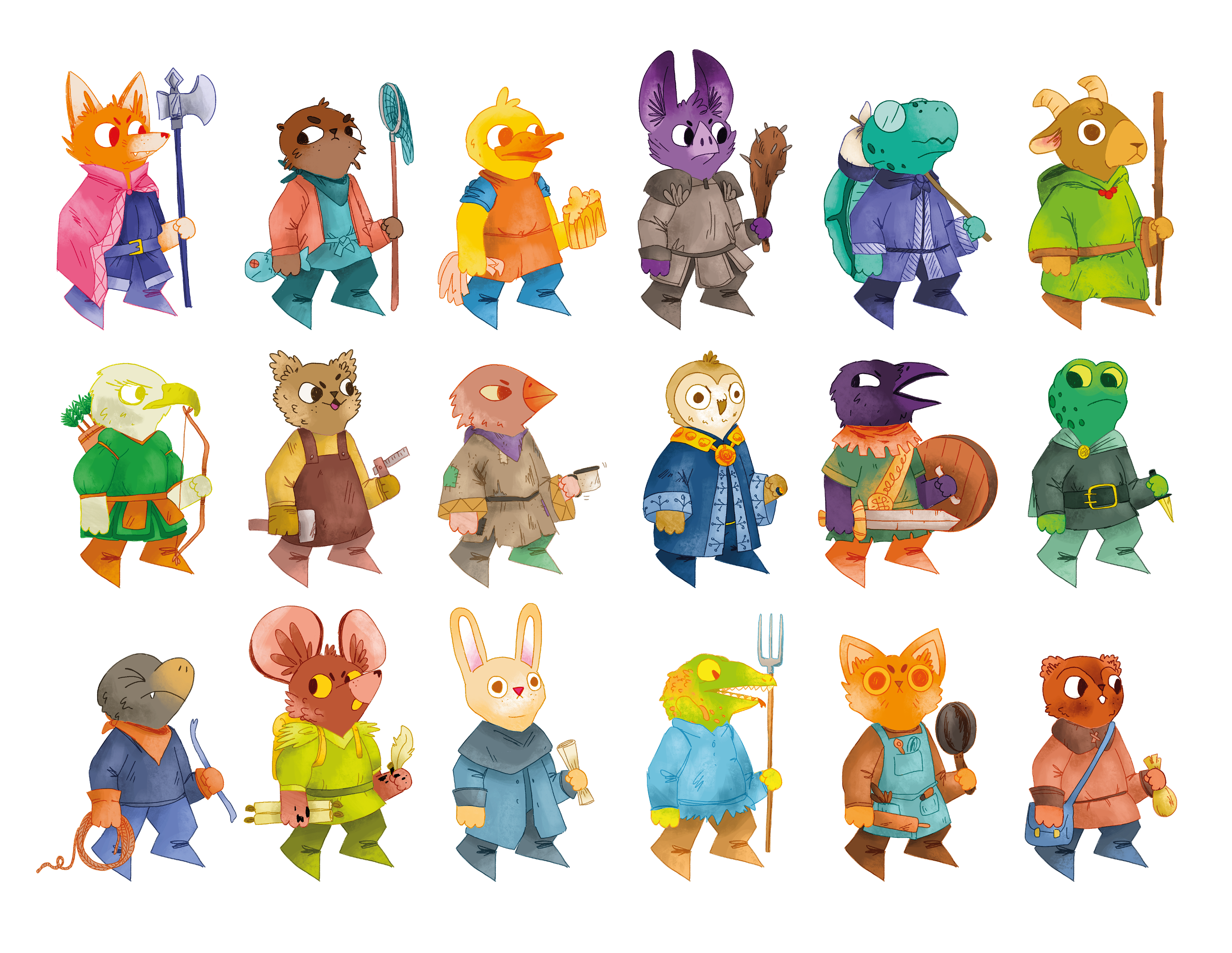 Je me suis laissée emportée par mon élan, j'ai réalisé 18 espèces d'animaux différents, pour 18 corps de métiers différents… Tous combinables les uns avec les autres. Soit un total de 324 PNJ différents. Wouaou.