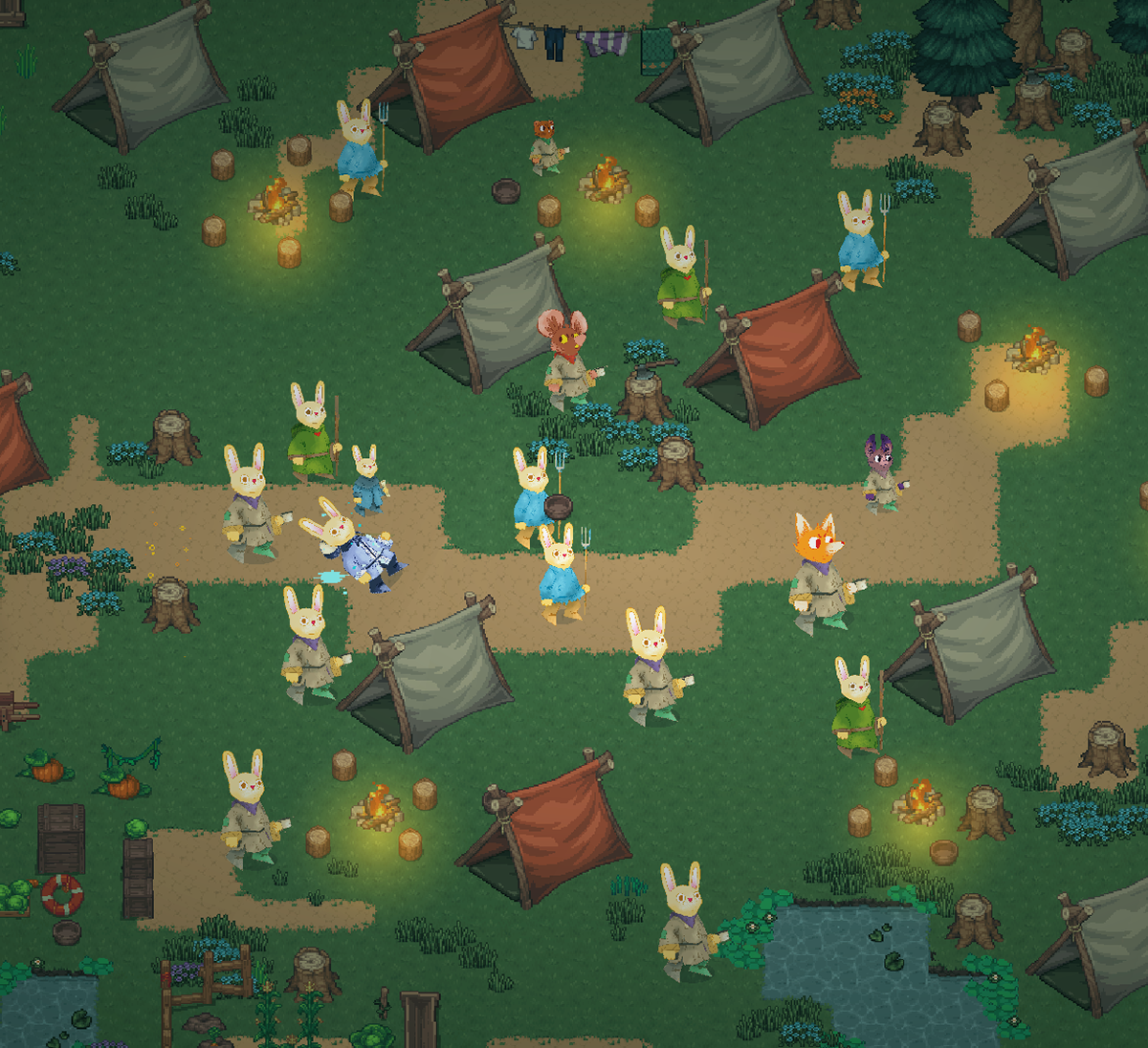 Dans le cadre de la préparation d'une campagne de jeu de rôle, mon compagnon a exprimé le besoin d'avoir quelques PNJ (personnages non joueurs) pour animer ses scènes via une plateforme en ligne, Onemore multiverse. Aimant par dessus tout le travail de Kyle Ferrin et son travail pour Root, je me suis empressée de réaliser quelques animaux et quelques vêtements de divers métiers.